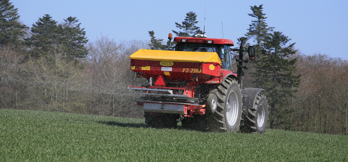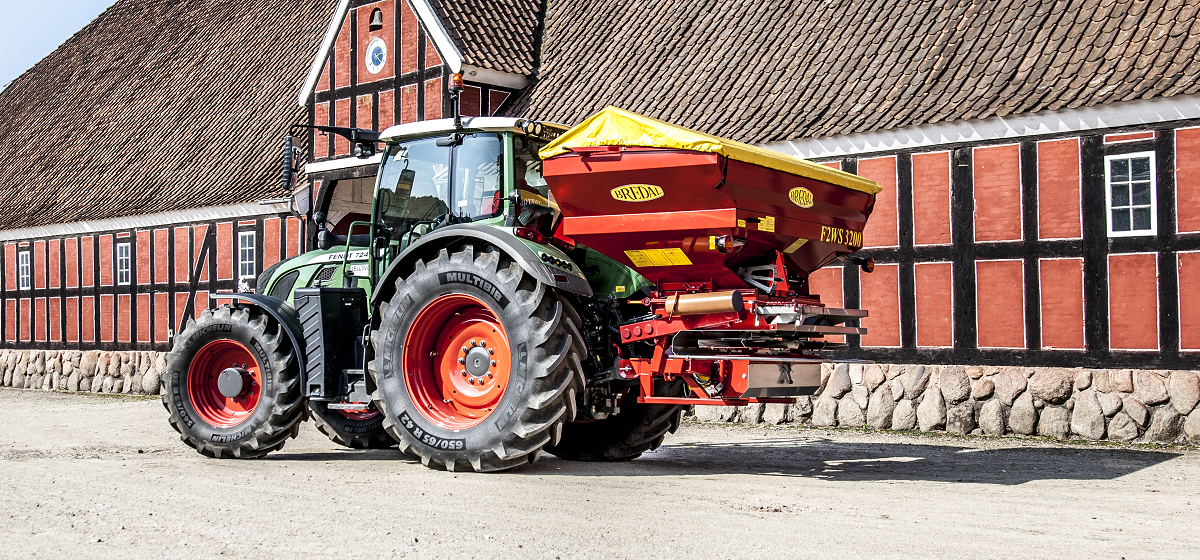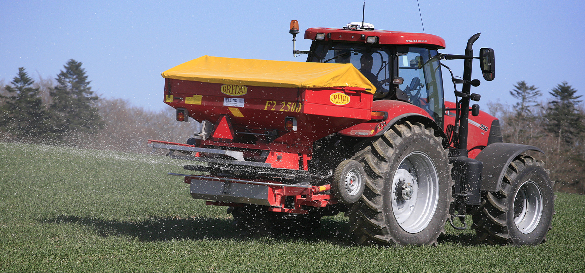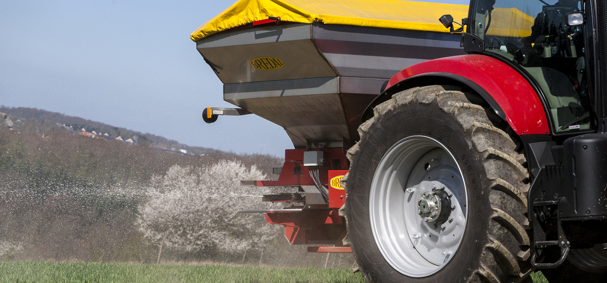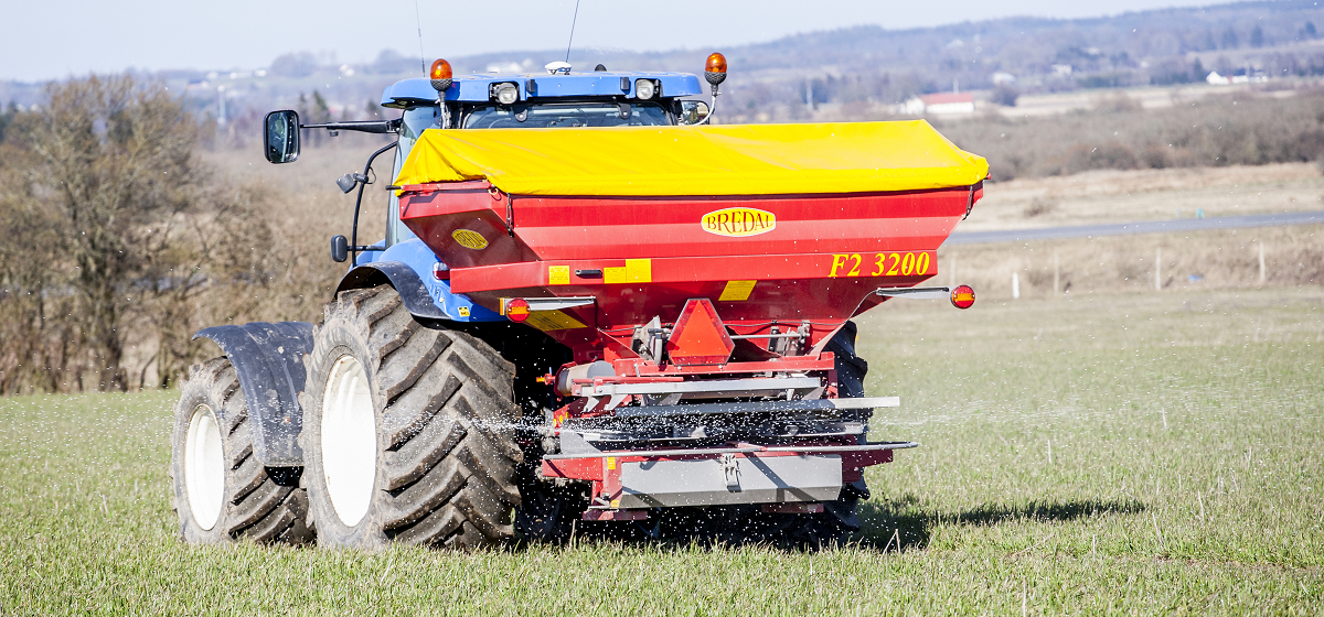 Bredal F2 je nesené rozmetadlo priemyselných hnojív s mechanickým odvaľovacím kolesom na nastavenie dávkovania hnojiva.