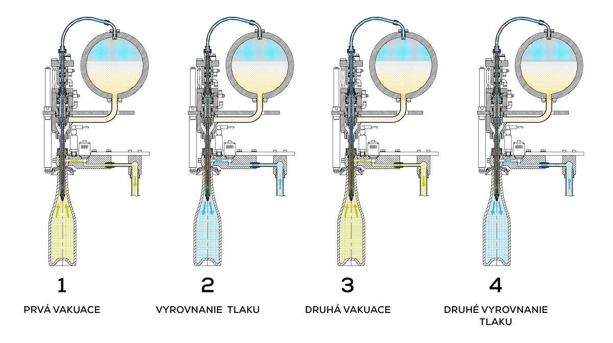 Počas tejto fázy dochádza k odsatie vzduchu z fľaše pomocou vákua. Podtlak vo fľaši po odsatí vzduchu je približne -0,6 bar.